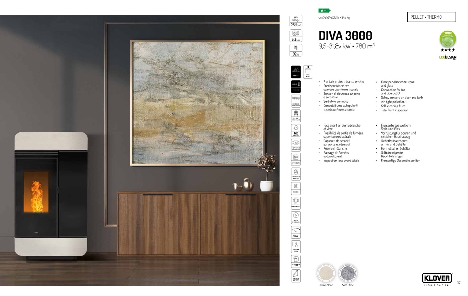 • Self-cleaning flues