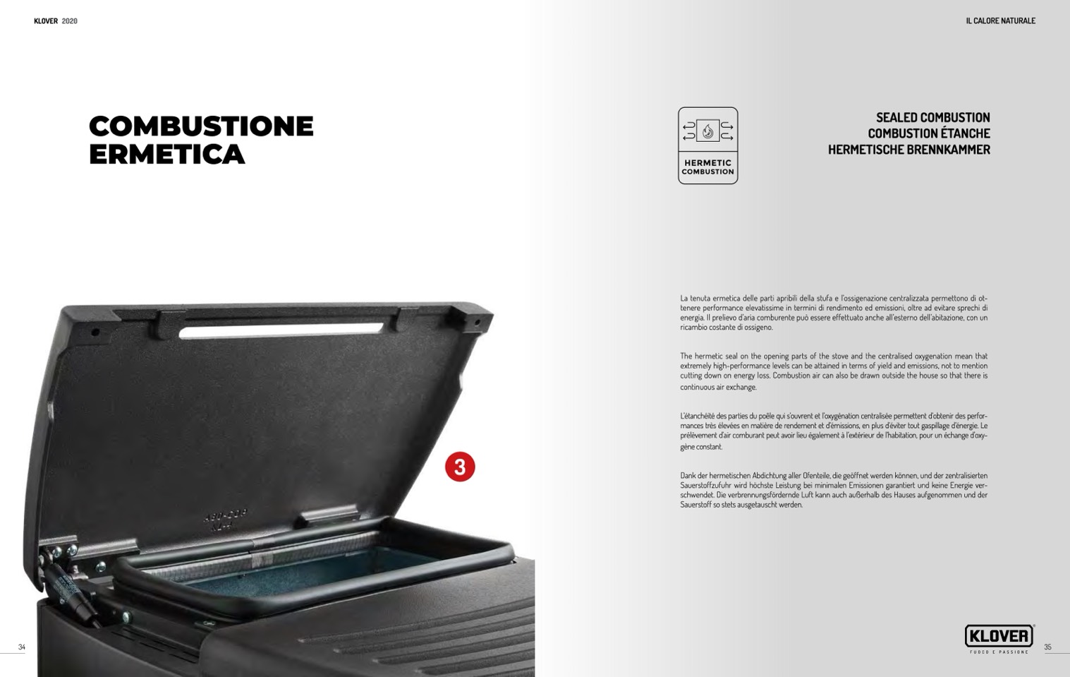 The hermetic seal on the opening parts of the stove and the centralised oxygenation mean that