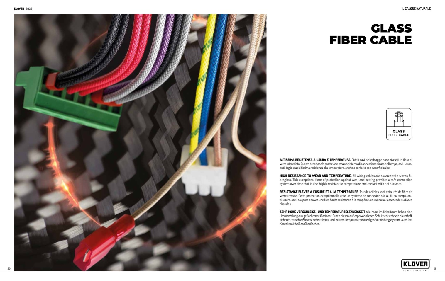 ALTISSIMA RESISTENZA A USURA E TEMPERATURA. Tutti i cavi del cablaggio sono rivestiti in fibra di