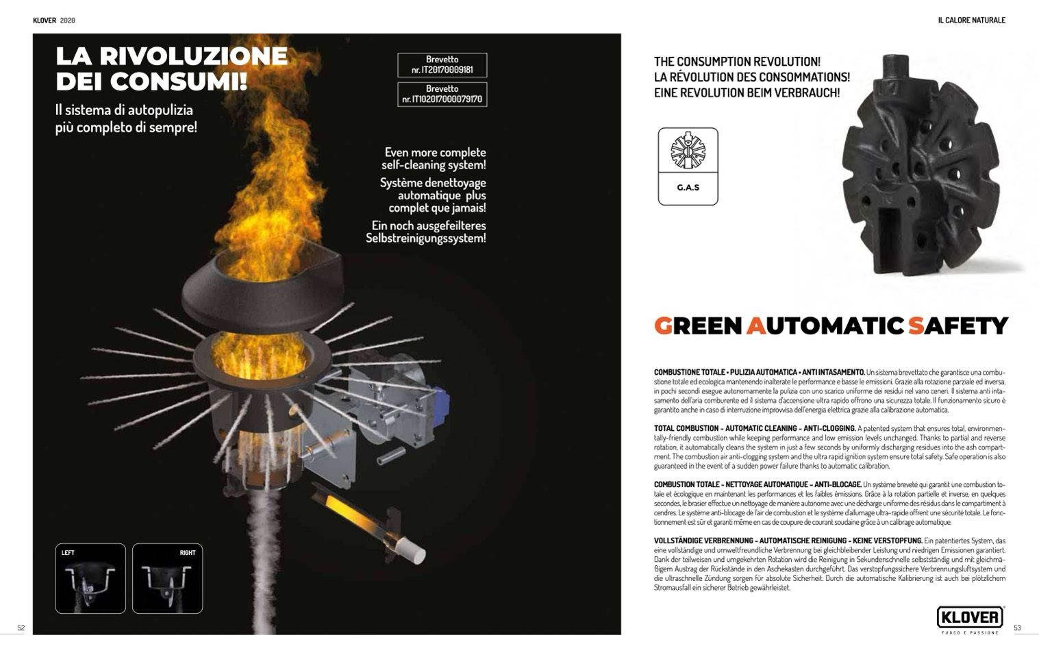 TOTAL COMBUSTION - AUTOMATIC CLEANING - ANTI-CLOGGING. A patented system that ensures total, environmen-