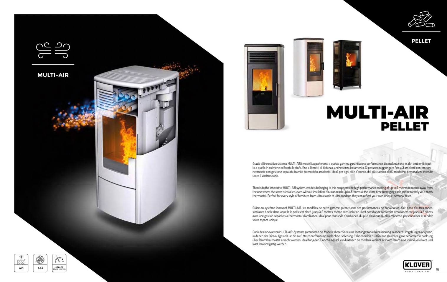 to a quello in cui viene collocata la stufa, fino a 9 metri di distanza, anche senza isolamento. Si possono raggiungere fino a 3 ambienti contempora-