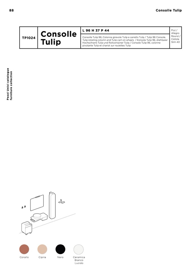 Consolle Tulip 96, Colonna girevole Tulip e carrello Tulip / Tulip 96 Console,
