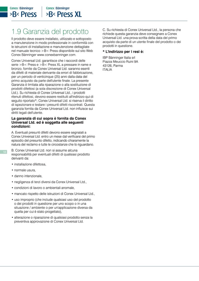richiede questa garanzia deve consegnare a Conex
