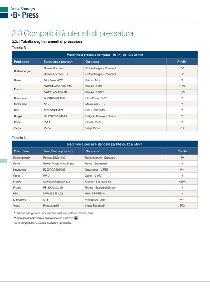 2.3.1 Tabella degli strumenti di pressatura