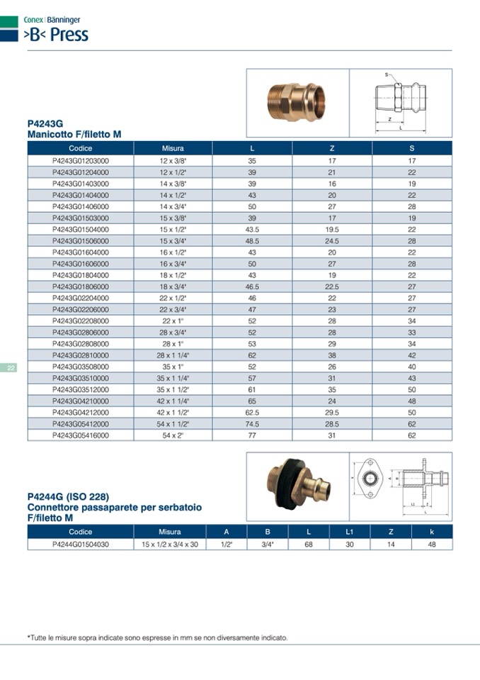 *Tutte le misure sopra indicate sono espresse in mm se non diversamente indicato.