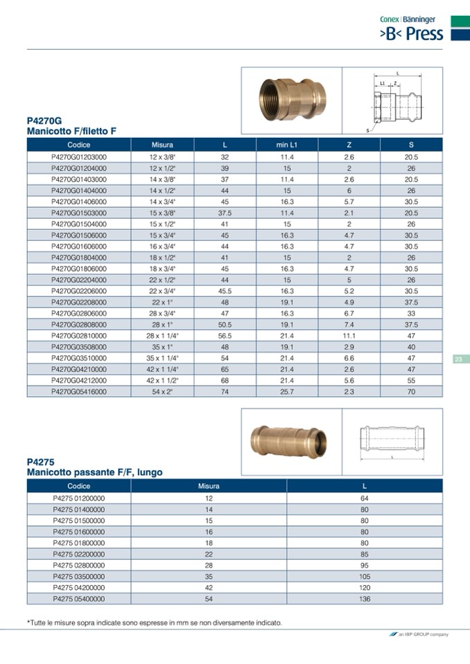 *Tutte le misure sopra indicate sono espresse in mm se non diversamente indicato.