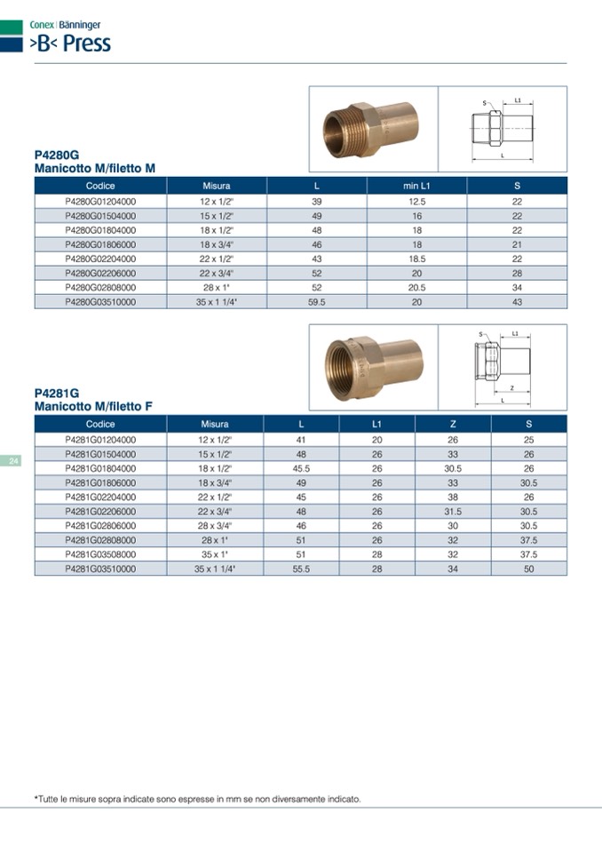 *Tutte le misure sopra indicate sono espresse in mm se non diversamente indicato.