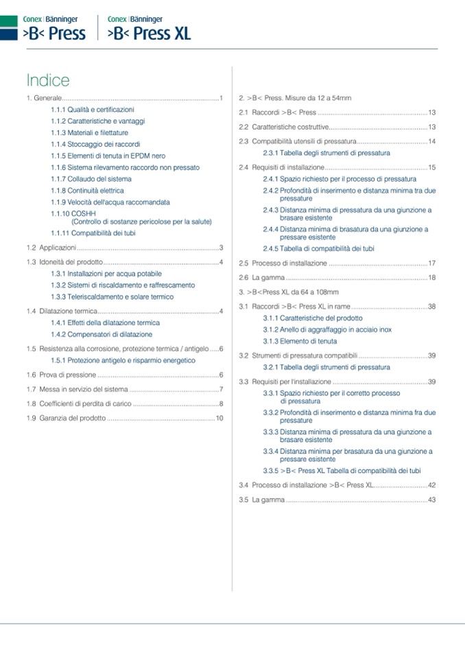 3.1 Raccordi >B< Press XL in rame.........................................38