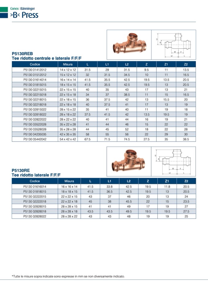*Tutte le misure sopra indicate sono espresse in mm se non diversamente indicato.