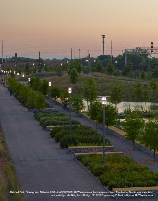 Railroad Park, Birmingham, Alabama, USA. A: ARCHITECT: HKW Associates, Landscape architect: Tom Leader Studio, associate land-