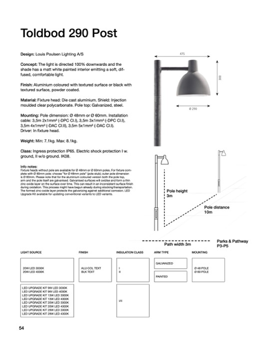 Fixture heads without pole are available for Ø 48mm or Ø 60mm poles. For fixture com-