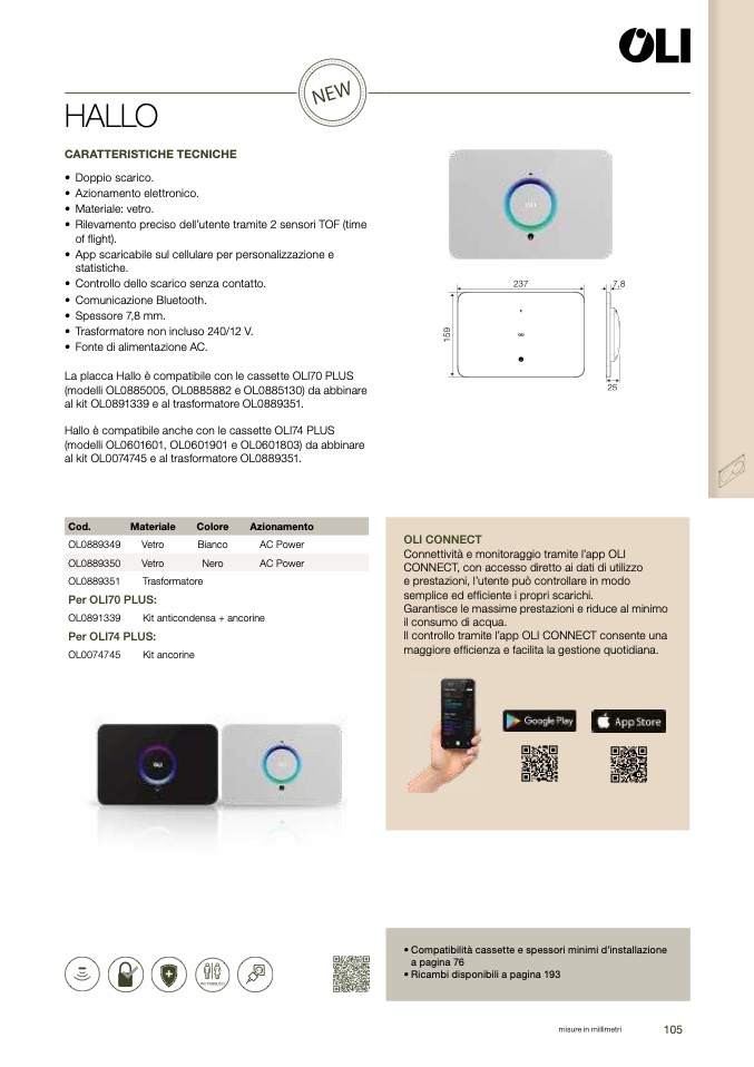 La placca Hallo è compatibile con le cassette OLI70 PLU