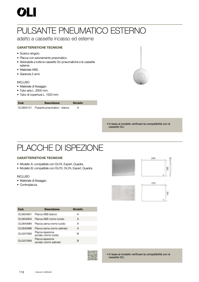 • Abbinabile a tutte le cassette OLI pneumatiche e le cassette