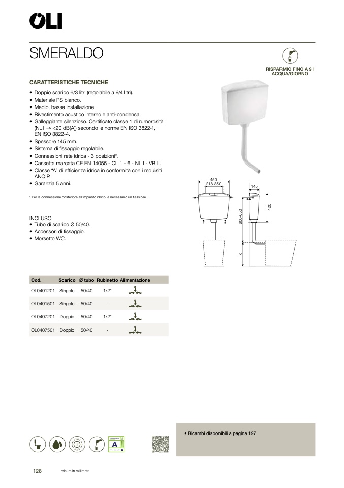 • Doppio scarico 6/3 litri (regolabile a 9/4 litri)
