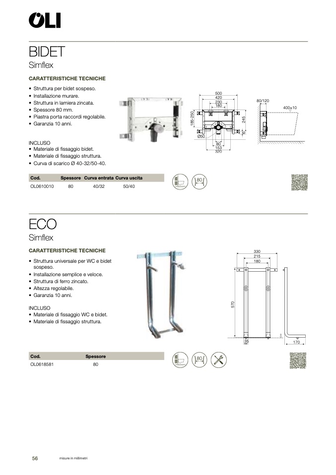 • Struttura universale per WC e bide