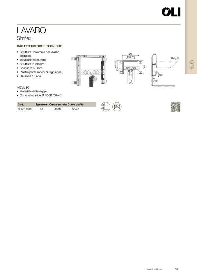 • Struttura universale per lavab