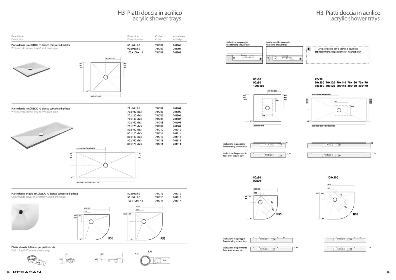 Piatto doccia in ACRILICO h3 bianco com10p00leto di piletta.