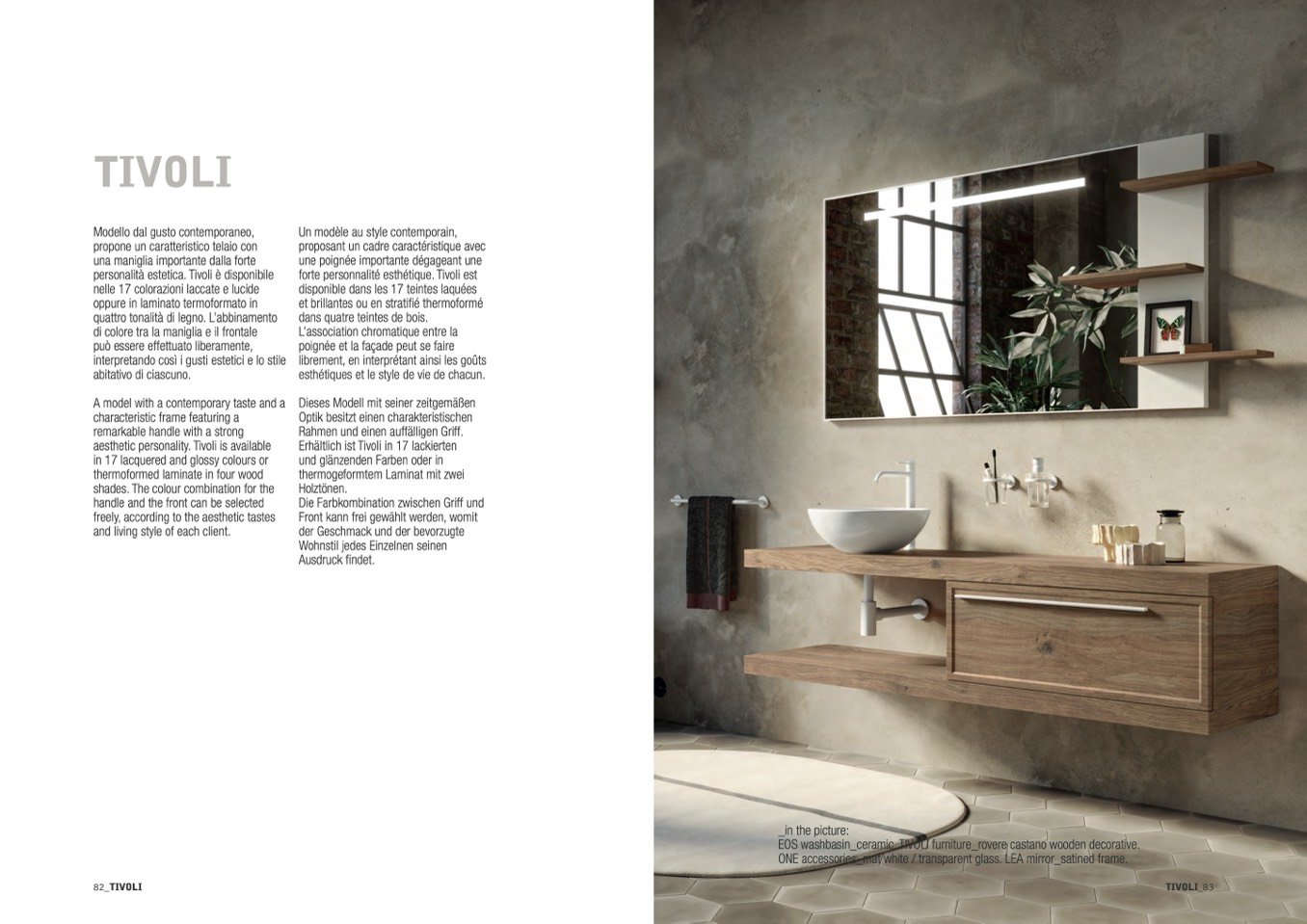 EOS washbasin_ceramic. TIVOLI furniture_rovere castano wooden decorative.