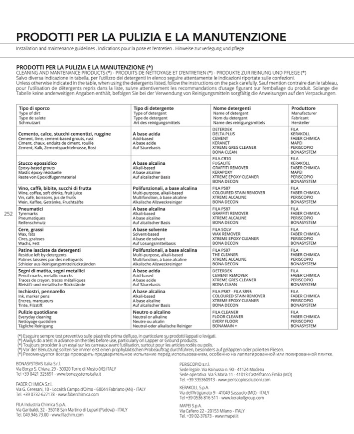 (*) Eseguire sempre test preventivo sulle piastrelle prima dell’uso, in particolare su prodotti lappati o levigati.