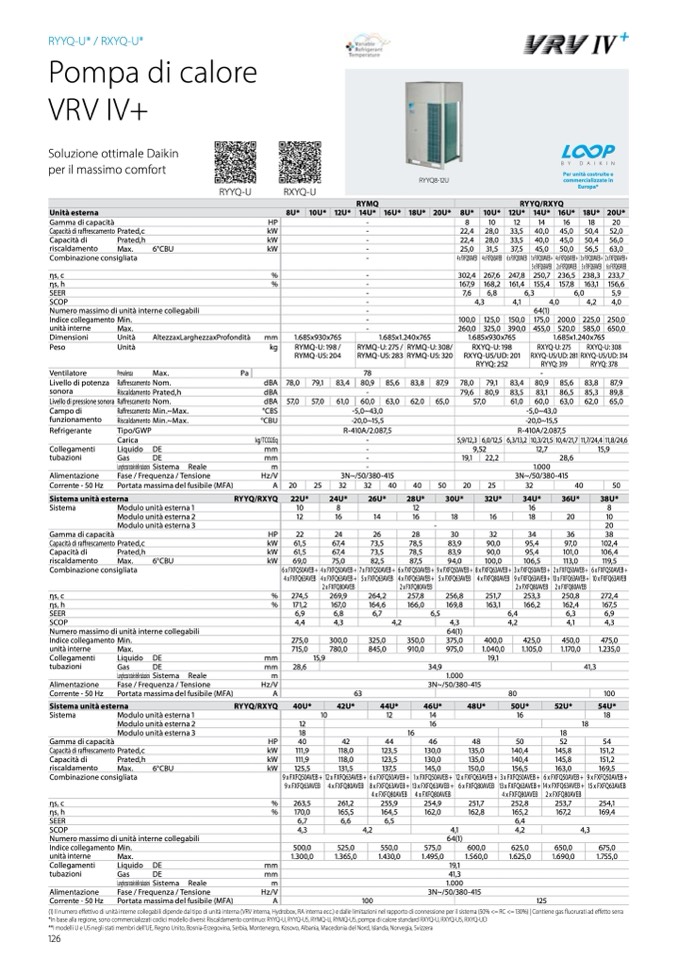 *In base alla regione, sono commercializzati codici modello diversi: Riscaldamento continuo: RYYQ-U, RYYQ-U5, RYMQ-U, RYMQ-U5, pompa di calore standard RXYQ-U, RXYQ-U5, RXYQ-UD