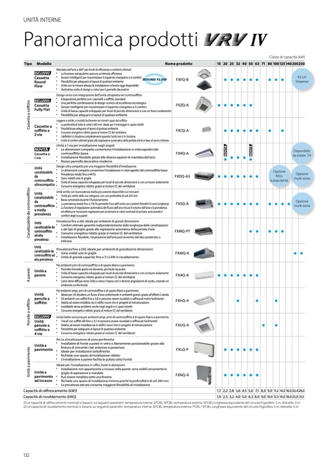 (2) Le capacità di riscaldamento nominali si basano sui seguenti parametri: temperatura interna: 20°CBS, temperatura esterna: 7°CBS / 6°CBU, lunghezza equivalente del circuito frigorifero: 5 m, dislivello: 0 m