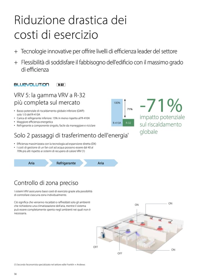 I sistemi VRV assicurano bassi costi di esercizio grazie alla possibilit