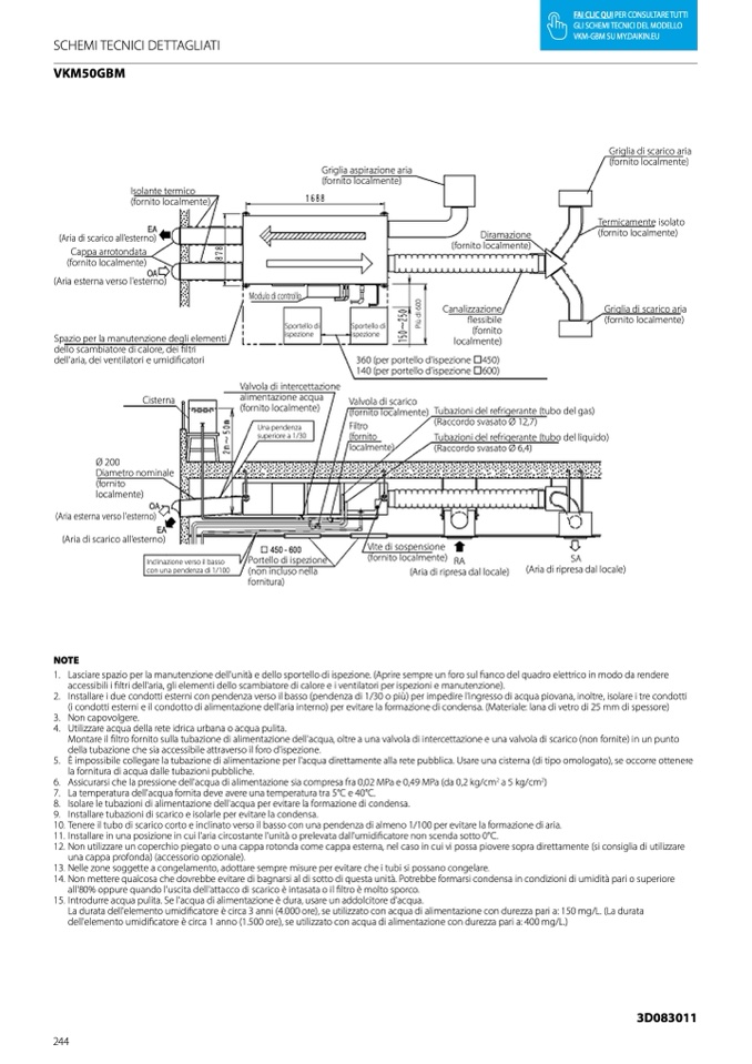 (i condotti esterni e il condotto di alimentazione dell'aria interno) per evitare la formazione di condensa. (Materiale: lana di vetro di 25 mm di spessore)