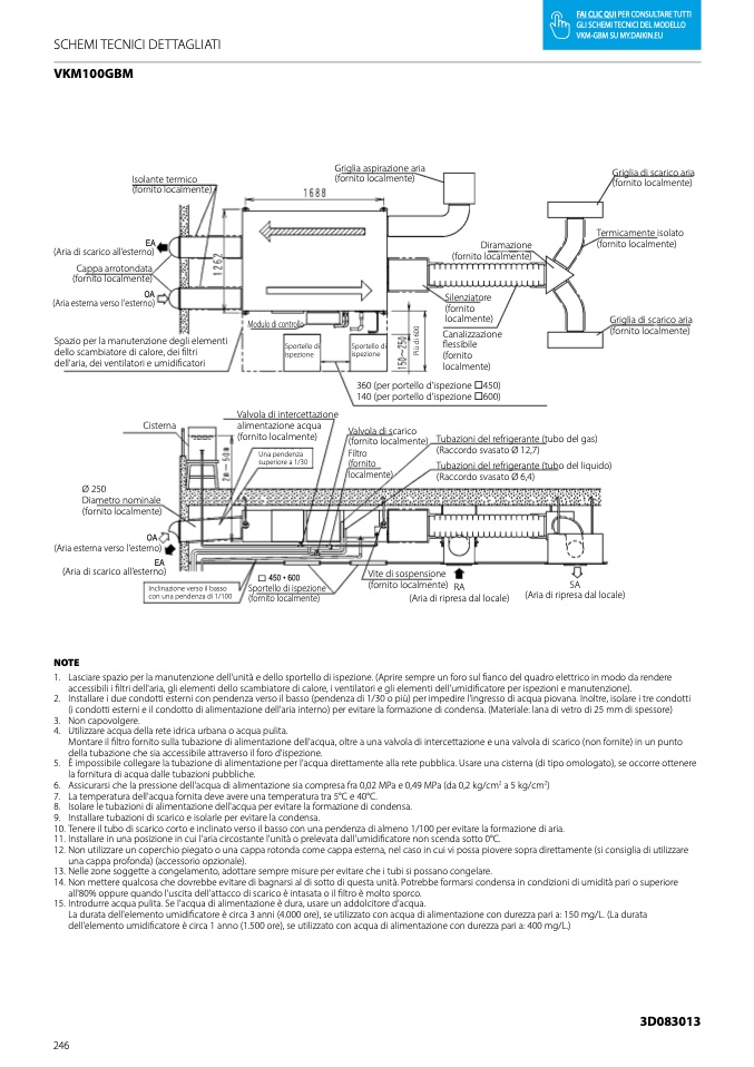 (i condotti esterni e il condotto di alimentazione dell'aria interno) per evitare la formazione di condensa. (Materiale: lana di vetro di 25 mm di spessore)