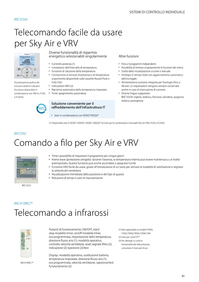 (1) Disponibile solo in RZAG*, RZASG*, RZQG*, RZQSG* (2) Solo per le combinazioni monosplit Sky Air FBA, FCAG e FCAHG