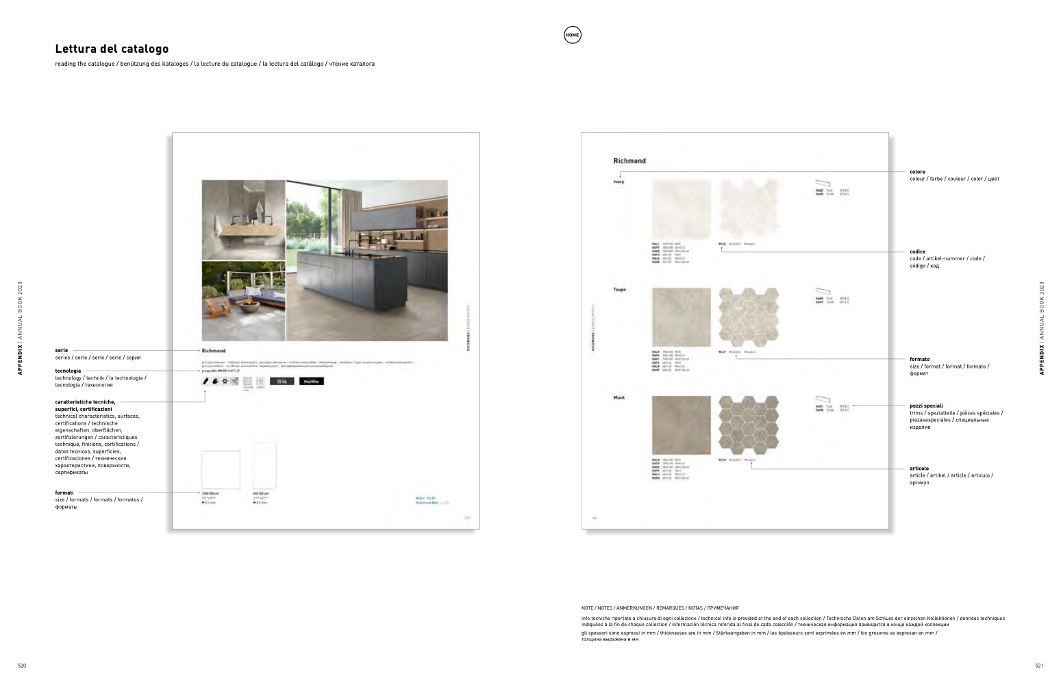 info tecniche riportate a chiusura di ogni collezione / technical info is provided at the end of each collection / Technische Daten am Schluss der einzelnen Kollektionen / données techniques