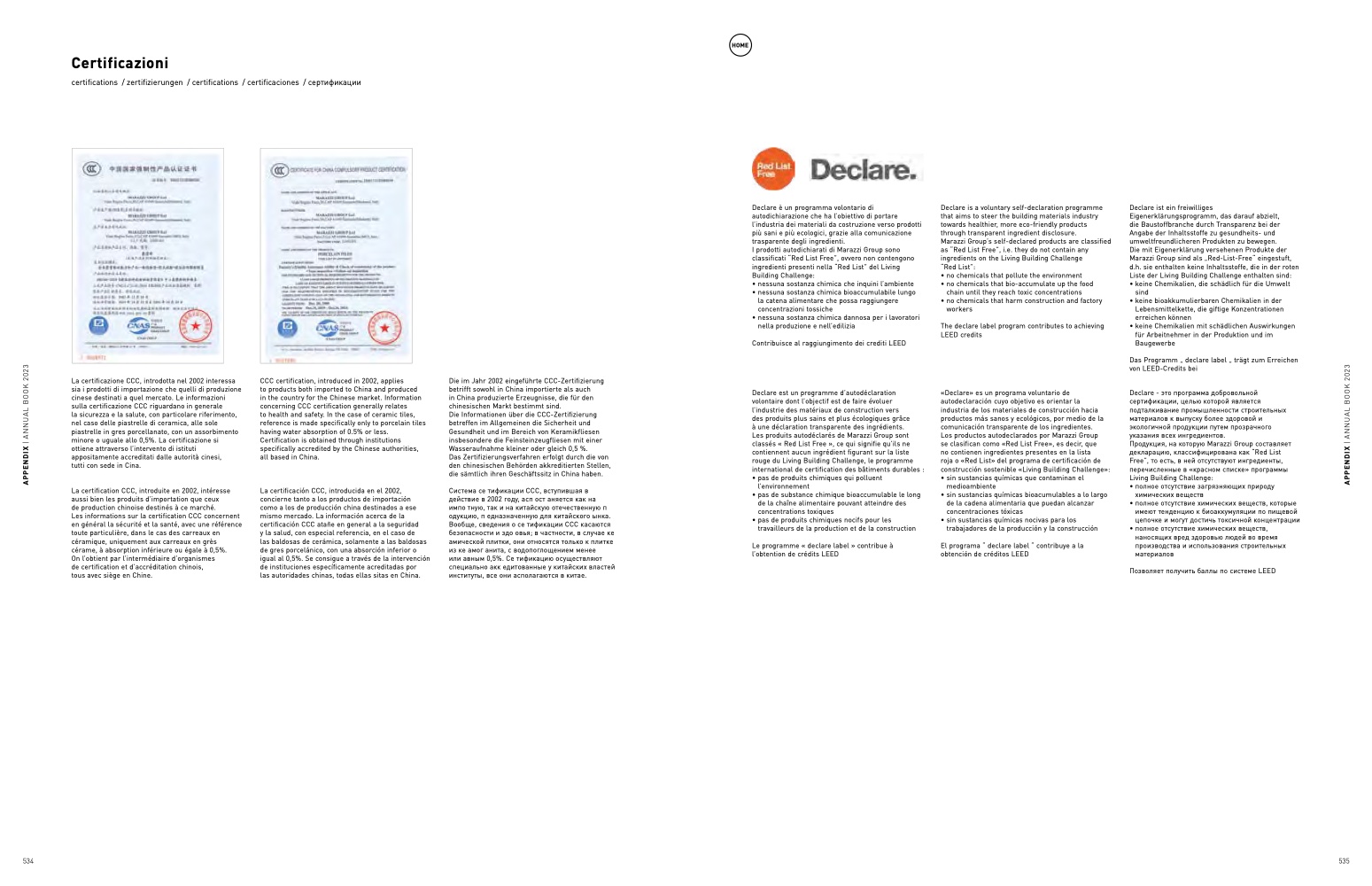 Marazzi Group sind als „Red-List-Free“ eingestuft,