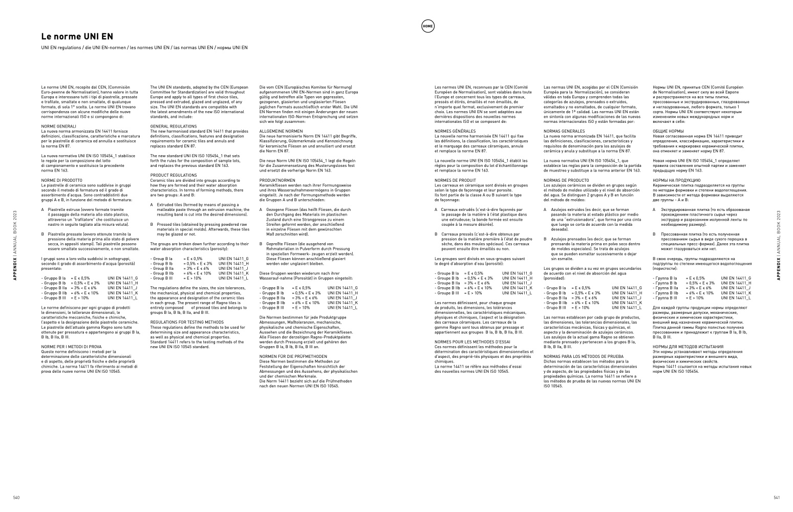 UNI EN regulations / die UNI EN-normen / les normes UNI EN / las normas UNI EN / нормы UNI EN