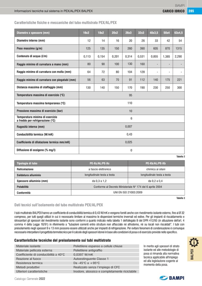 Informazioni tecniche sul sistema in PEX/AL/PEX BALPEX