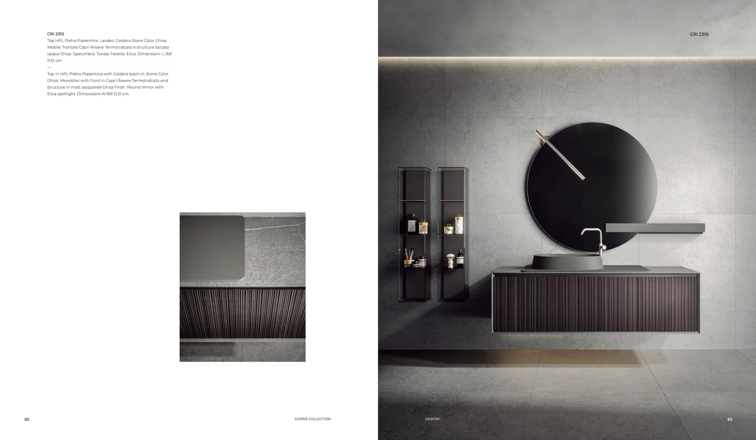 Top HPL Pietra Piasentina. Lavabo: Caldera Stone Color Ghisa.