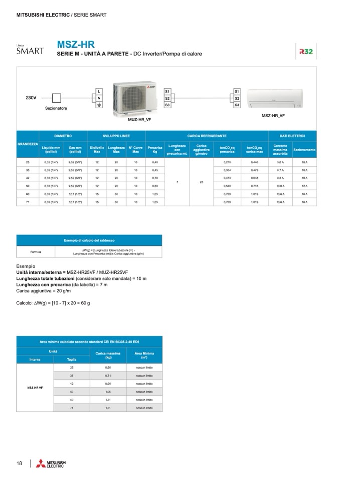Area minima calcolata secondo standard CEI EN 60335-2-40 ED6