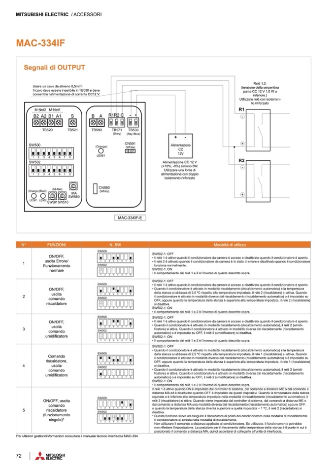 • Il relè 1 è attivo quando il condizionatore da camera è acceso e disattivato quando il condizionatore è spento.