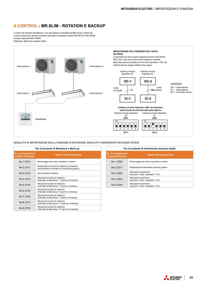 MITSUBISHI ELECTRIC / IMPOSTAZIONI E FUNZIONI