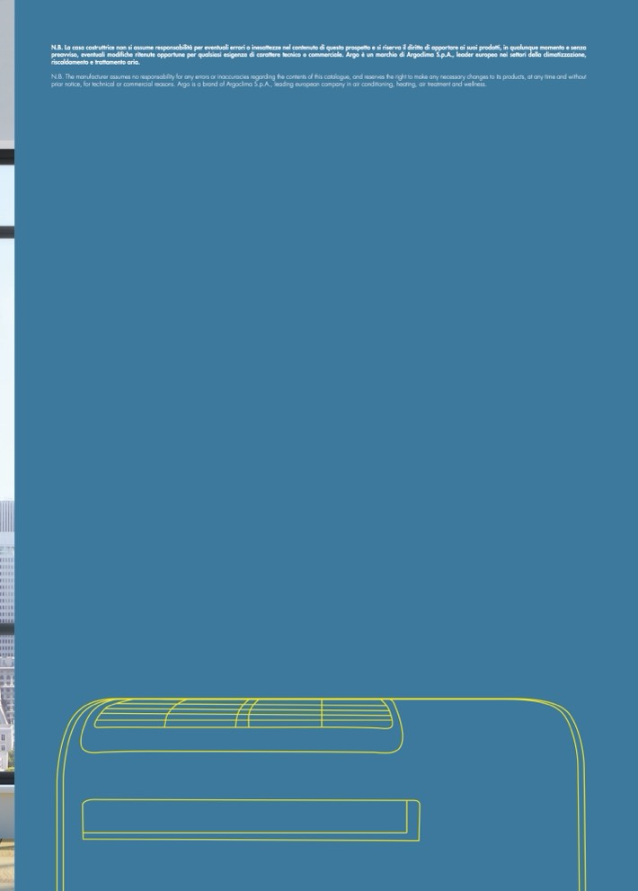 prior notice, for technical or commercial reasons. Argo is a brand of Argoclima S.p.A., leading european company in air conditioning, heating, air treatment and wellness.