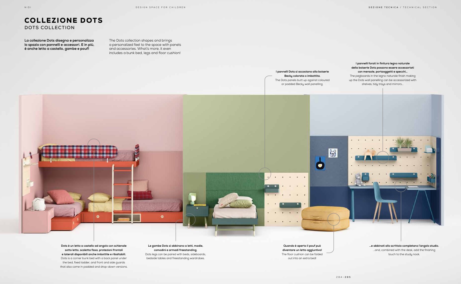 Dots è un letto a castello ad angolo con schienale