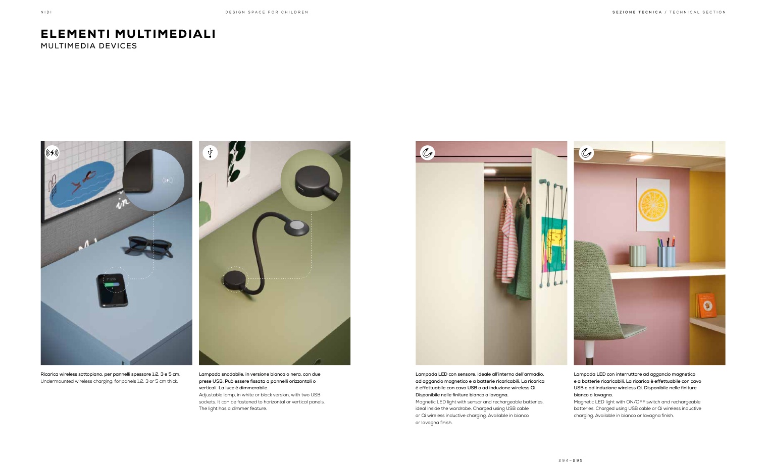 USB o ad induzione wireless Qi. Disponibile nelle finiture