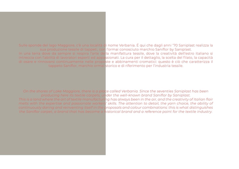 sua produzione tessile di tappeti, con l’ormai conosciuto marchio Saniflor by Saniplast.