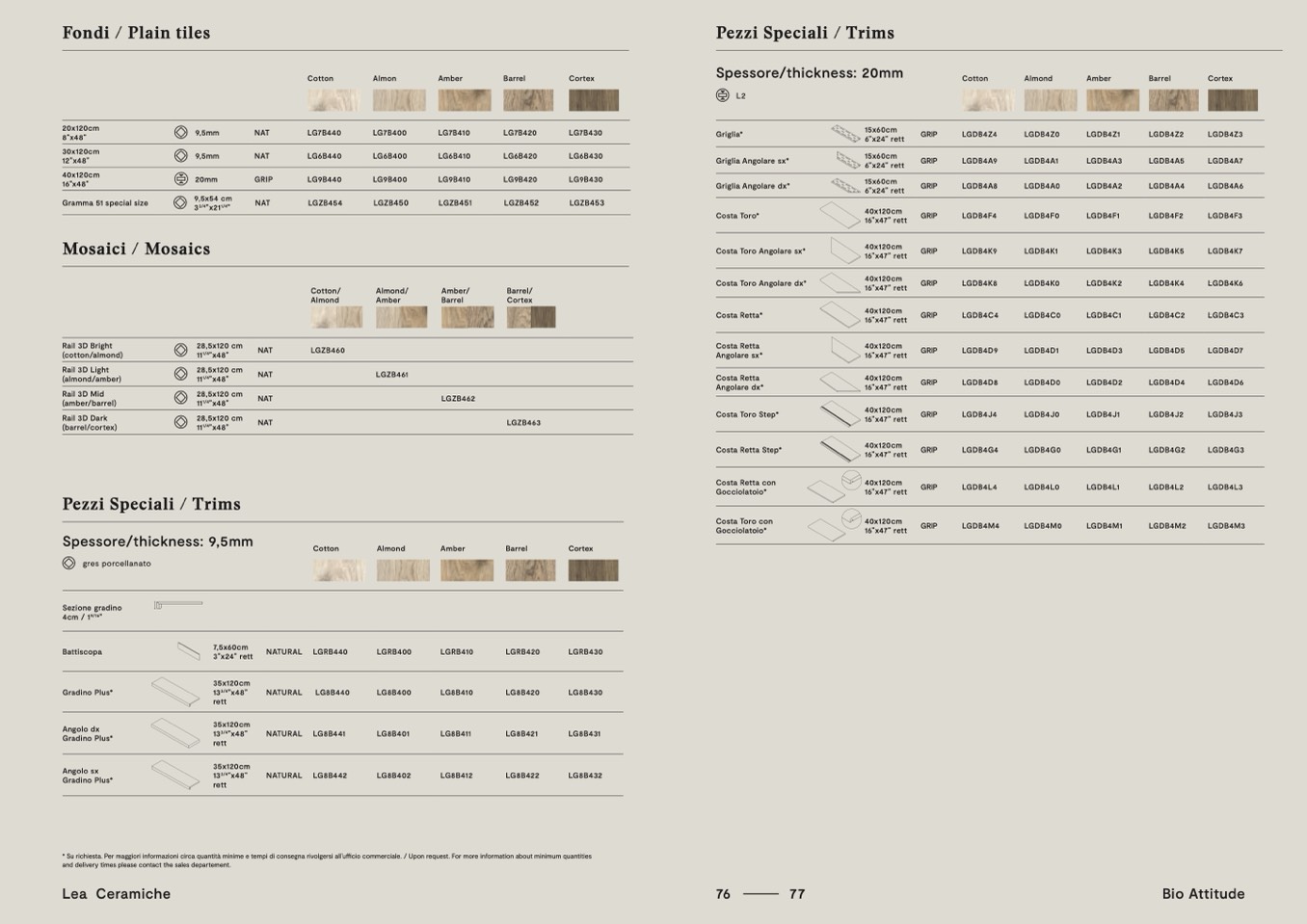 à minime e tempi di consegna rivolgersi all’ufficio commerciale. / Upon request. For more information about minimum quantities