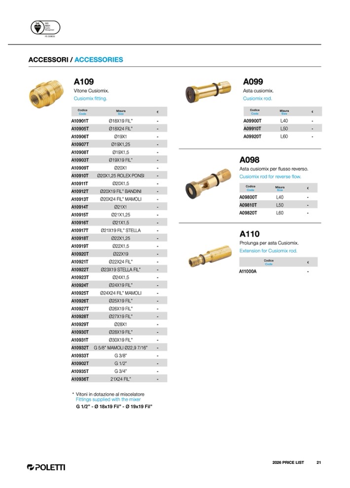 G 5/8” MAMOLI Ø22,9 7/16”