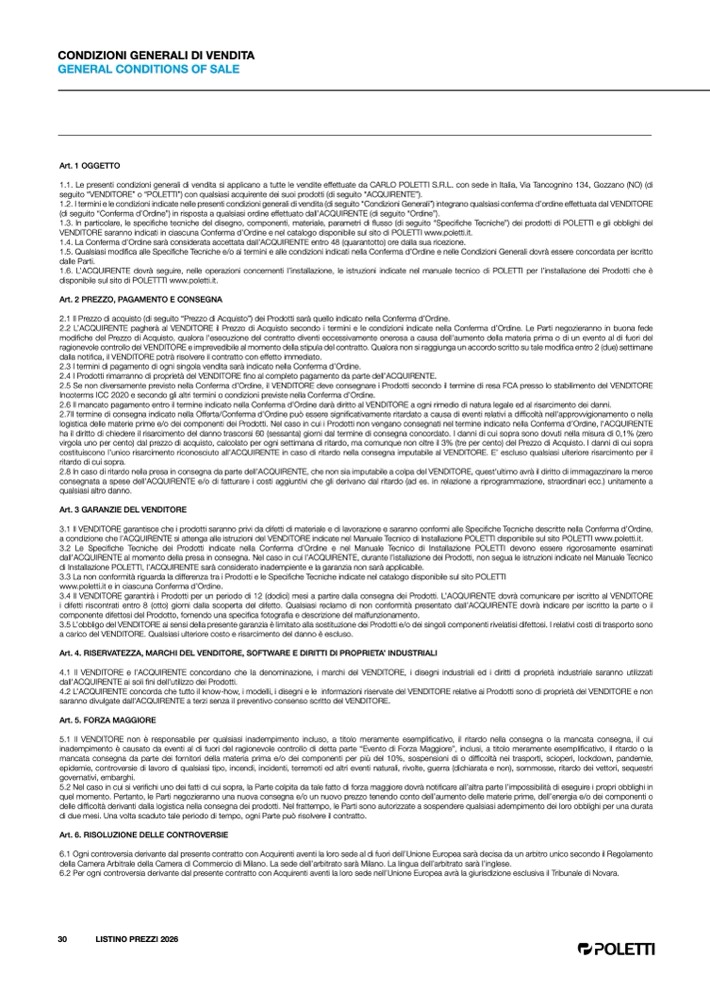 www.poletti.it e in ciascuna Conferma d’Ordine
