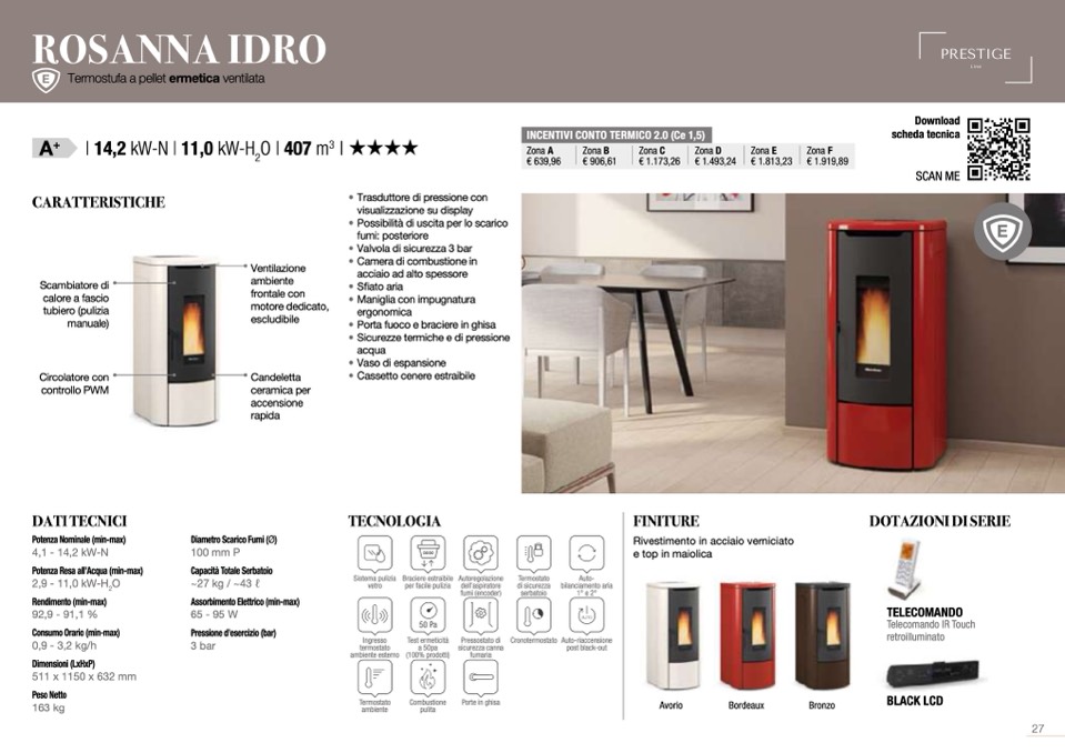 Termostufa a pellet ermetica ventilata