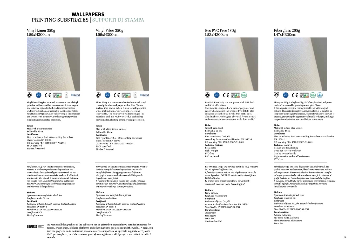 By request all the graphics of the collection can be printed on a special IMO certified substrate for