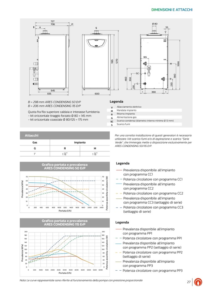 Scarico condensa (diametro interno minimo Ø 13 mm)