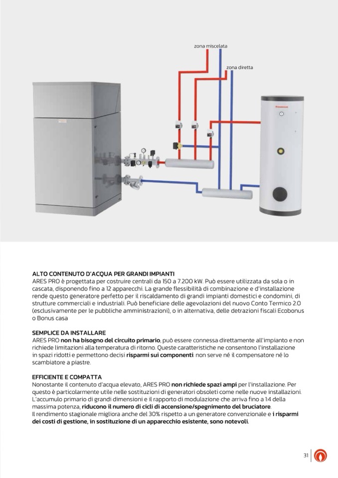 ARES PRO non ha bisogno del circuito primario, può essere connessa direttamente all’impianto e non