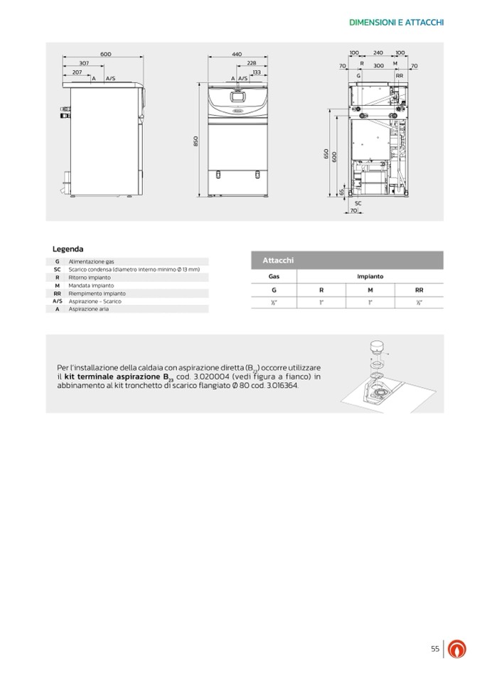 SC Scarico condensa (diametro interno minimo Ø 13 mm)