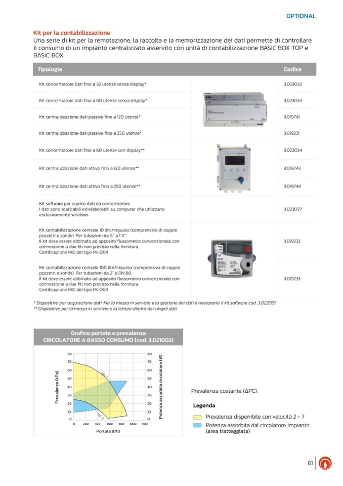 * Dispositivo per acquisizione dati. Per la messa in servizio e la gestione dei dati è necessario il kit software cod. 3.023037.